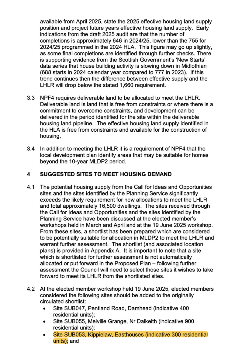 The potential site for allocation at Kippielaw that you refer to is on the housing site shortlist agreed in June. As the decision of the Planning Committee on the list of sites for housing allocation in the Proposed Plan has yet to be formally made, it would be inappropriate to confirm whether the Kippielaw site will be included as a housing site or a long-term site until elected members reach a formal decision. Furthermore, the content of the Proposed Plan will not be confirmed until it is agreed at a full Council meeting.